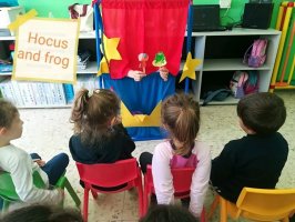 Insegnare una lingua straniera ai bambini della scuola dell'infanzia, paradossalmente, é più semplice che negli altri ordini di scuola, in quanto l'apprendimento avviene senza lo spontaneo blocco mentale della traduzione. Durante questo anno scolastico si è pensato di realizzare un laboratorio di lingua inglese rivolto ai bambini di 5 anni con la collaborazione di colleghe esperte in lingua inglese, con lo scopo di rendere i bambini consapevoli dell’esistenza di lingue diverse dalla propria e di stimolarli all’apprendimento di semplici espressioni e vocaboli della lingua inglese attraverso attività divertenti, creative e di ascolto.
