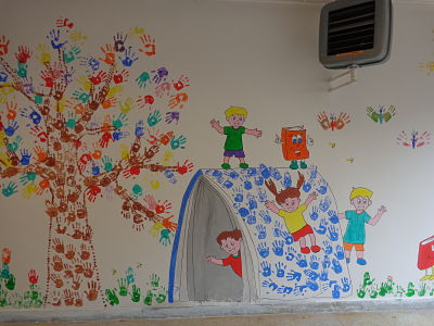 Lo scopo di condividere storie ed amare i libri è stato realizzato insieme a Letizia Netti e Manuela Schiano, docenti e attrici di teatro, che hanno indossato i panni di “Lettrici” per la narrazione ad alta voce di passaggi salienti del libro “Ladre di Regali”, di Aidan Chambers; alle docenti delle classi quarte del 33° Circolo che hanno attivato nelle loro classi percorsi di lettura relativi al tema del bullismo e svolto dei laboratori didattici per la produzione di lavori creativi da esporre nella scuola; a Roberto Bratti , scrittore, che ha incontrato i genitori in biblioteca per far conoscere i pericoli della rete e i rischi dei social e del cyber- bullismo. La riflessione si è sviluppata a partire dalla lettura di alcuni brani del libro “Bulli con un click” ed è stata moderata dall’insegnante Giuseppina Marotta. Per l’iniziativa RimBOOKiamoci, gli alunni del 33° Circolo hanno avuto anche l’occasione di dipingere un fantastico Murales per rendere più bello l’ex refettorio dove si è svolto l’evento rivolto ai bambini. Grazie all’opera gratuita di Gabriella De Vita e Rosaria Miceli, mamme Volontarie, vere e proprie artiste che hanno messo disposizione il loro talento, in solo due giorni , i 120 alunni delle classi quarte della scuola Risorgimento sono stati coinvolti a rappresentare un dipinto con le loro mani su una parete del locale.